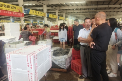 潛江小龍蝦交易中心有“中國(guó)蝦谷”之稱,是全球最大的小龍蝦集散中心,這里有供應(yīng)鏈平臺(tái),提供撮合交易、倉(cāng)儲(chǔ)物流、金融貸款等服務(wù)。在交易市場(chǎng)車間,師生目睹分揀、置冰、打包、發(fā)貨快速流程,操作人員在3秒內(nèi)精準(zhǔn)識(shí)別小龍蝦的大小、色澤與鮮活度,日均處理量超300噸。