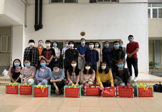 為持續做好疫情防控常態化下留校學生的教育管理工作,深入了解留校學生的思想、學習、生活等情況,幫助學生解決實際困難,5月25日上午,經濟學院黨委書記柯尊韜、黨委副書記劉君強、正處級專職組織員吳嬰、副院長毛中明和各年級輔導員老師前往北區宿舍看望慰問受疫情影響留校的本科生和研究生。