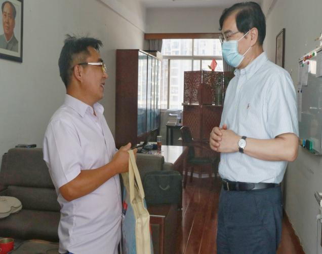 會前,李校長到辦公室走訪看望了經濟學院二級教授李忠斌、2021年度從教執教滿30年教職工沈道權教授,感謝他們為學校發展做出的貢獻,并為他們頒發紀念品。