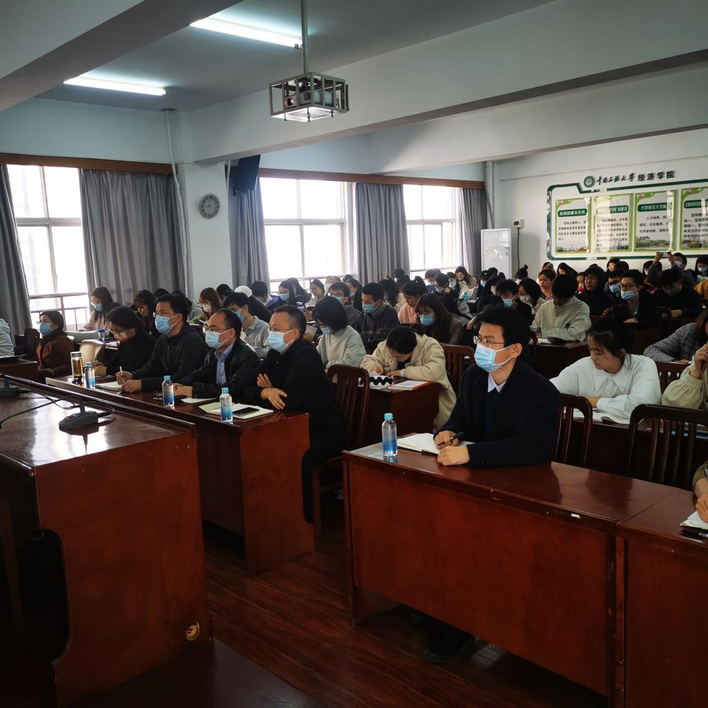 11月12日上午,經濟學院召開黨委理論學習中心組第九次專題學習會議,收看黨的十九屆六中全會精神新聞發布會直播,學院黨委理論學習中心組成員和第11期黨員發展對象培訓班全體學員在1006會議室集中收看,學院各師生黨支部靈活采取線上線下等方式組織其他黨員同志參加學習。