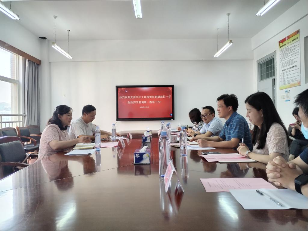 為持續(xù)做好學(xué)生安全管理工作,6月1日上午,學(xué)校黨委學(xué)生工作部副部長劉紅娟、學(xué)生資助管理中心辦公室主任董浩燁一行到經(jīng)濟學(xué)院調(diào)研指導(dǎo)學(xué)生工作情況。經(jīng)濟學(xué)院黨委書記柯尊韜、黨委副書記劉君強、本科生輔導(dǎo)員、研究生輔導(dǎo)員、班導(dǎo)師代表參加了會議。會議由柯尊韜主持。