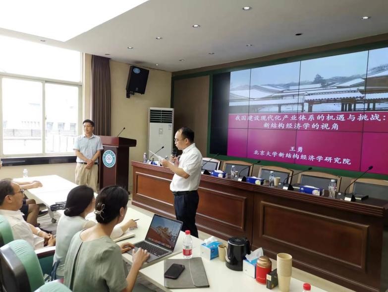 6月23日下午,北京大學新結構經濟學研究院學術副院長王勇教授受邀來我院開展以“我國建設現代化產業體系的機遇與挑戰:新結構經濟學視角”主題的學術講座。本次講座由經濟學院院長李波教授主持,中華民族共同體研究院院長姚上海教授以及來自經濟學院和管理學院近100名師生參加了講座。