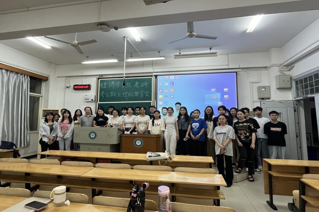 為幫助同學們了解考研、考公和求職的相關信息及備考技巧,解決同學們在未來職業(yè)規(guī)劃和學業(yè)發(fā)展方面的困惑,5月23日晚,經(jīng)濟學教研室邀請曾曦芝、陳小莉、龔穎琳、馬志威和楊欣雨五位優(yōu)秀畢業(yè)生為經(jīng)濟學專業(yè)2021級同學進行考研、考公、求職經(jīng)驗分享。經(jīng)濟學教研室主任馬宏、副主任閔銳和胡衛(wèi)東三位老師參加分享會。
