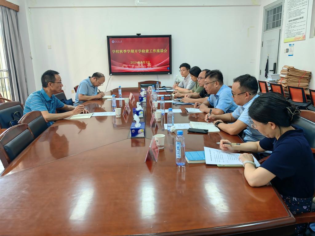 根據(jù)學(xué)校2024年秋季開學(xué)相關(guān)工作要求,9月2日上午,學(xué)校秋季學(xué)期開學(xué)檢查工作組成員黨委宣傳部常務(wù)副部長桂孫來、國有資產(chǎn)與實(shí)驗室管理處副處長余俊來學(xué)院檢查工作。