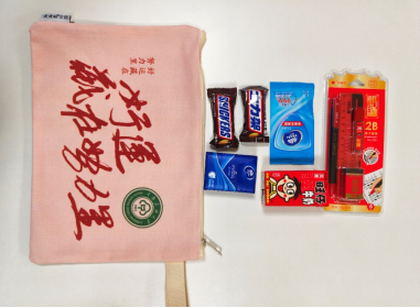 隨后,與會領導和輔導員、班導師走到學生面前,為學生送上考研大禮包。禮包包括考試文具套裝、紙巾、濕巾、士力架等物資,現(xiàn)場洋溢著溫暖的笑容和愉悅的笑聲。