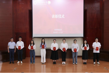 大會在莊嚴的《中華人民共和國國歌》中拉開序幕。院學工辦副主任安樹庭介紹了《經濟學院2025年“黨建+學生工作”實施方案》。劉君強宣讀了《經濟學院黨委關于2024年度黨支部民主評議黨員優秀等次結果的通報》,對21個優秀黨員進行表彰,肯定了他們在政治素養、實踐服務等方面的先鋒模范作用,激勵全體學生黨員以先進為榜樣,擔當時代使命。戴迎峰為獲評“優秀”等次的學生黨員代表頒獎。魯睿介紹了2025年春季黨校培訓工作安排。