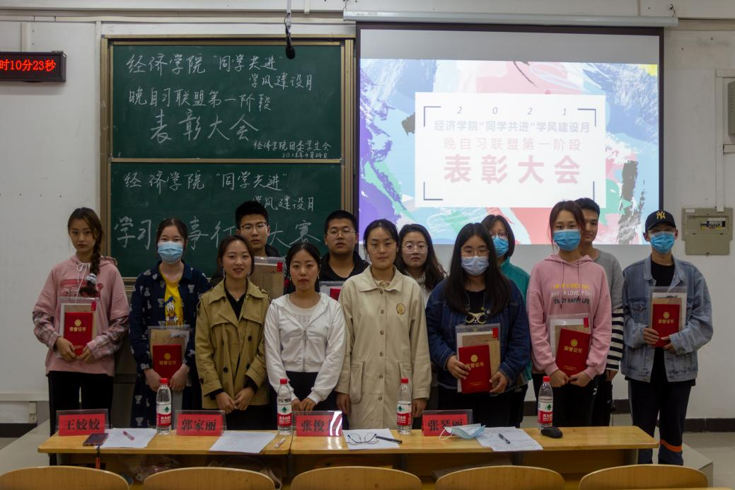 (本站訊:姜權(quán)卿)為強(qiáng)化“同學(xué)共進(jìn)”學(xué)風(fēng)建設(shè)實(shí)施效果,擴(kuò)大活動(dòng)影響力,激勵(lì)學(xué)生繼續(xù)振奮精神、努力學(xué)習(xí),4月24日晚,由經(jīng)濟(jì)學(xué)院團(tuán)委學(xué)生會(huì)學(xué)習(xí)部主辦的“同學(xué)共進(jìn)”學(xué)風(fēng)建設(shè)月之學(xué)習(xí)故事分享暨階段表彰大會(huì)于15號(hào)教學(xué)樓108教室順利舉行。2017級(jí)保研優(yōu)秀學(xué)生代表張俊龍、張琴麗、郭家麗、王姣姣以及2019、2020級(jí)“晚自習(xí)聯(lián)盟”活動(dòng)參與者到場(chǎng)參加會(huì)議。