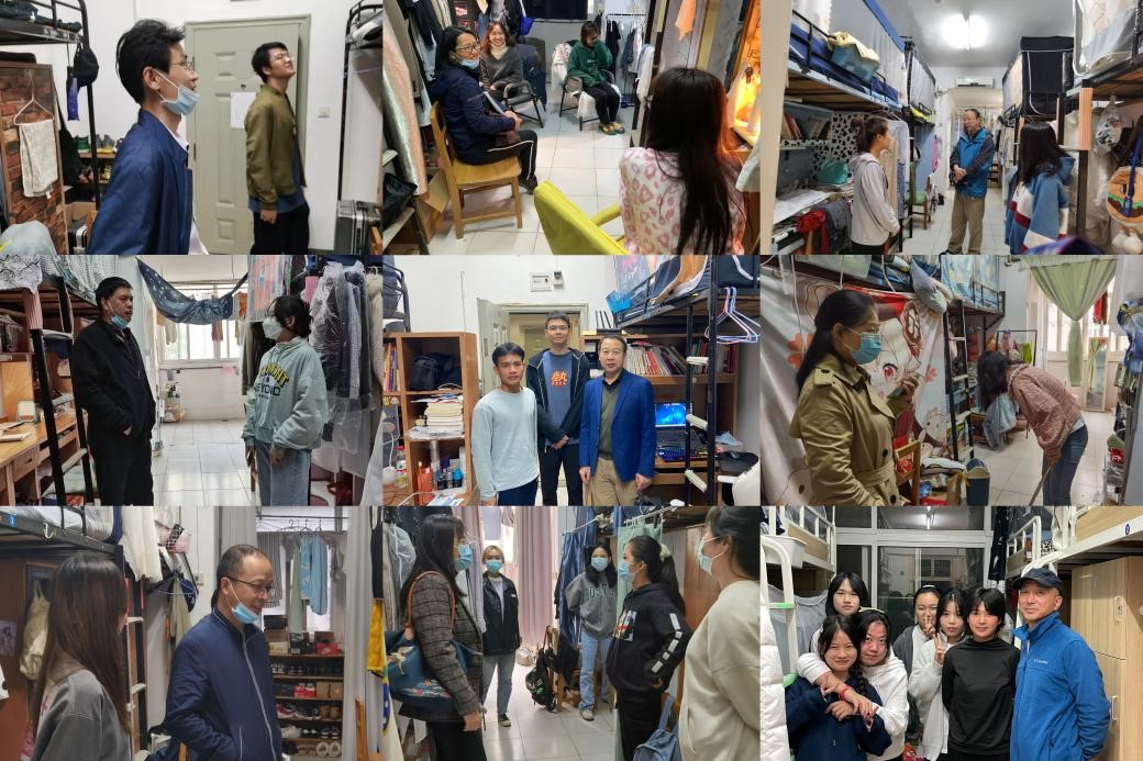 各班班導師走進學生寢室,全面了解同學們的學習生活情況,與班委及學習生活中有困難的同學進行重點交流,并就同學們提出的問題做出說明和解答。走訪過程中,班導師要求同學們積極配合疫情防控工作,自覺遵守“非必要不出校”和“近7天核酸常態化檢查”等規定,做到“思想不松懈,行動不松勁”。老師們還強調了用電安全、防火防盜的重要性,引導同學們自覺愛護寢室環境,共同打造良好寢室氛圍。在與同學們深入交流的過程中,老師們鼓勵同學們在大學這一考驗自主性和自覺性的關鍵階段保持良好的學習和生活習慣,做好時間管理和目標規劃,利用課堂內外的各種資源提升自我。