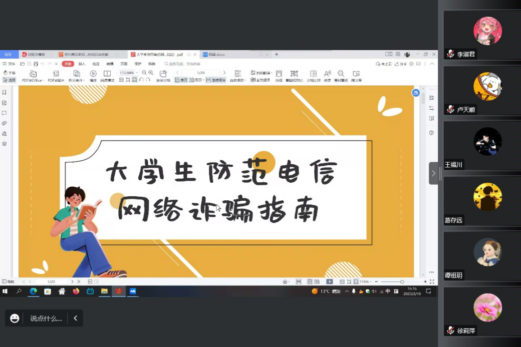 本次班團會重點引導同學們做好“三防三重視”:春季傳染病防治、防范新冠病毒感染、電信詐騙防范;重視國家安全、校紀校規和生活規范、心理健康。同時,啟發同學們實現“兩個目標”,即養成良好學習生活習慣和提高自我保護能力,以積極向上的精神狀態迎接新學期的學習與生活。