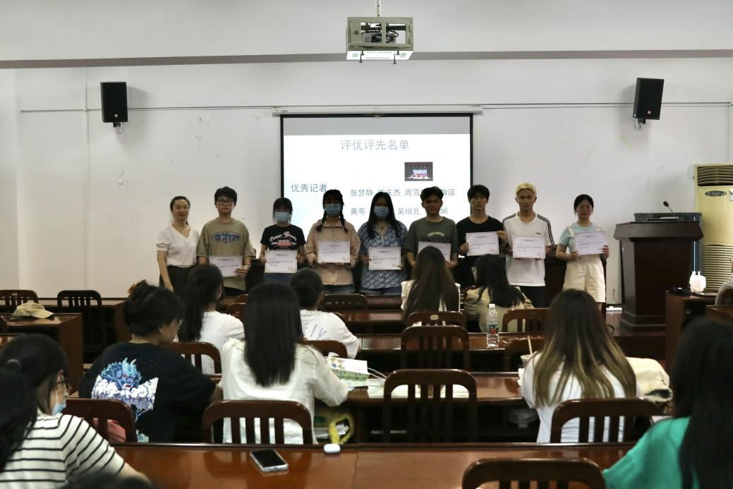 徐瑩老師表示,學(xué)院黨委高度重視新聞宣傳工作和新聞工作者的培養(yǎng),記者團(tuán)是學(xué)院工作和先進(jìn)典型的記錄者、傳播者,自從記者團(tuán)成立以來,一批又一批優(yōu)秀的學(xué)生在記者團(tuán)中得到了成長和鍛煉,希望新一屆記者團(tuán)成員注重學(xué)習(xí),努力提高業(yè)務(wù)水平和專業(yè)素養(yǎng),履職盡責(zé)做好記者工作。團(tuán)隊(duì)建設(shè)上要?jiǎng)?chuàng)新培訓(xùn)內(nèi)容和形式、組織多樣化團(tuán)建交流活動(dòng),將記者團(tuán)建設(shè)成一支富有活力、素質(zhì)過硬的團(tuán)隊(duì),為學(xué)院新聞報(bào)道、輿論宣傳和文化建設(shè)提供更多視角、注入更多活力。會(huì)議最后,徐瑩老師為評(píng)優(yōu)評(píng)先獲獎(jiǎng)成員頒發(fā)獎(jiǎng)狀,并公布了2023屆記者團(tuán)團(tuán)委會(huì)成員名單。