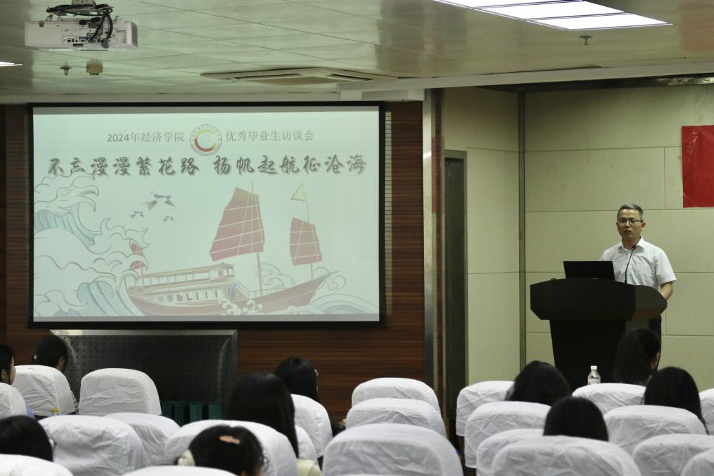 為幫助經院學子找到適合自己的學習方法,度過精彩的大學生活,5月16日晚,經濟學院在16號教學樓二樓報告廳舉辦了2024年“不忘漫漫繁花路,揚帆遠航征滄海”優秀畢業生論壇。本次活動邀請了六位優秀畢業生進行經驗分享,經濟學院團委書記、2020級輔導員安樹庭和各年級學生代表參加論壇。