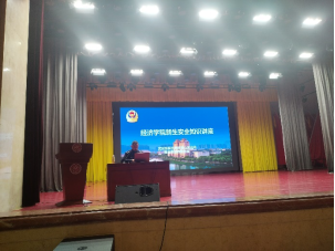 為進(jìn)一步加強(qiáng)2024級新生安全教育,提高2024級新生安全防范意識和遵紀(jì)守法意識,10月12日下午,經(jīng)濟(jì)學(xué)院在學(xué)術(shù)會堂召開2024級新生安全教育大會,鐵箕山派出所吳高濤應(yīng)邀為新生做安全知識講座。2024級輔導(dǎo)員安樹庭、郭修齊,2024級全體新生參加講座。講座由安樹庭主持。