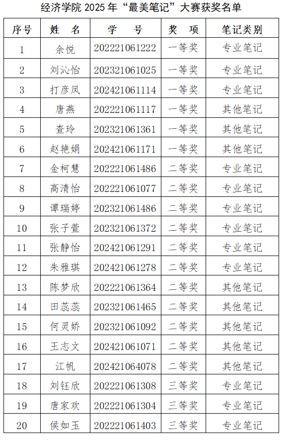 本次大賽挖掘優秀學習案例,發揮榜樣引領作用,激勵學生養成規范記錄、高效整理的學習習慣。“最美筆記”作為學風建設的縮影,展現出學生的治學態度與精神追求。未來,經濟學院將繼續加強學風建設,創新育人形式,培育更多扎實功底與創新精神兼具的經濟領域人才,不斷提高人才培養質量。