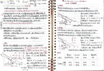 本次大賽分專業筆記組和其他筆記組。同學們提交的參賽作品緊扣2024-2025學年核心課程,涵蓋《宏觀經濟學》《計量經濟學》《微積分》等重點內容。參賽筆記邏輯清晰、內容詳實、形式創新,展現出學生對知識的深入理解和良好的整理能力。其中,金融2202班余悅同學的《銀行信貸分析》側重于標注核心概念與案例分析,字跡工整、層次分明,體現出扎實的專業基礎。金融2301班劉沁怡同學的《金融學》筆記運用思維導圖將抽象概念可視化,借助彩色標簽突出關鍵定義,版面設計美觀,兼具實用性與創新性。經濟學類2406班趙艷娟同學的綜合筆記則通過圖表結合的方式分析不同效應的影響,手寫筆記條理清晰,公式推導與理論闡釋相得益彰,反映出深度思考與主動學習的態度。