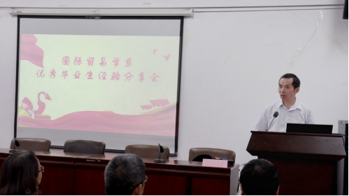 6月5日,經濟學院15棟1006室里氣氛熱烈,一場聚焦學子成長的盛會在此拉開帷幕。為充分發(fā)揮朋輩引領作用,引導學生樹立向上求知、向前求索的信念,國際貿易學系優(yōu)秀畢業(yè)生經驗分享會如期舉辦。經濟學院黨委書記戴迎鋒、副院長毛中明等領導老師蒞臨現(xiàn)場,柏振忠教授致歡迎辭,向優(yōu)秀畢業(yè)生與充滿期待的在校學子表示誠摯歡迎。