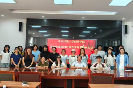 10月11日下午,經濟學院國貿實驗班2401班在15號教學樓801會議室召開升學規劃動員會。班導師柏振忠、三名研究生代表譚依琳、張輝、楊晗玥及班級全體同學參加會議。本次會議由班級團支書牛明月主持。