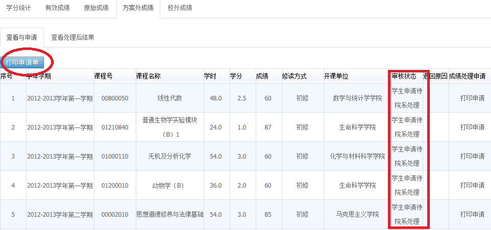 4、申請有誤可自行撤回,申請后自行打印申請表交所在學院審核。