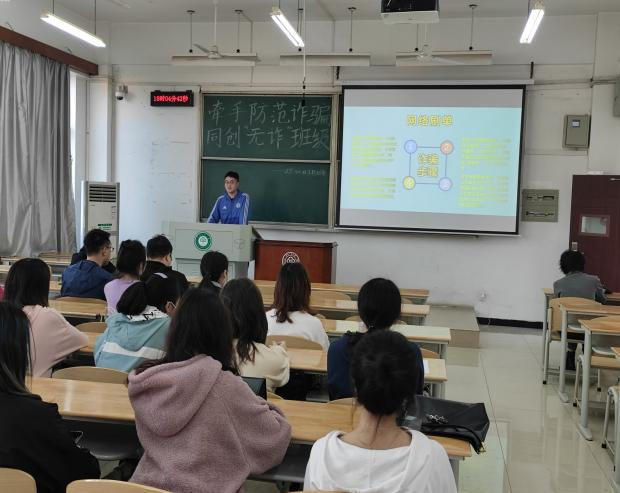 2019級和2020級分別召開“防電詐”專題年級大會進行防電詐宣傳,由年級輔導員進行宣講,宣講團成員進行切身體會交流和案例分析。2017、2018級陸續召開防電詐主題班會進行防電詐知識宣傳。