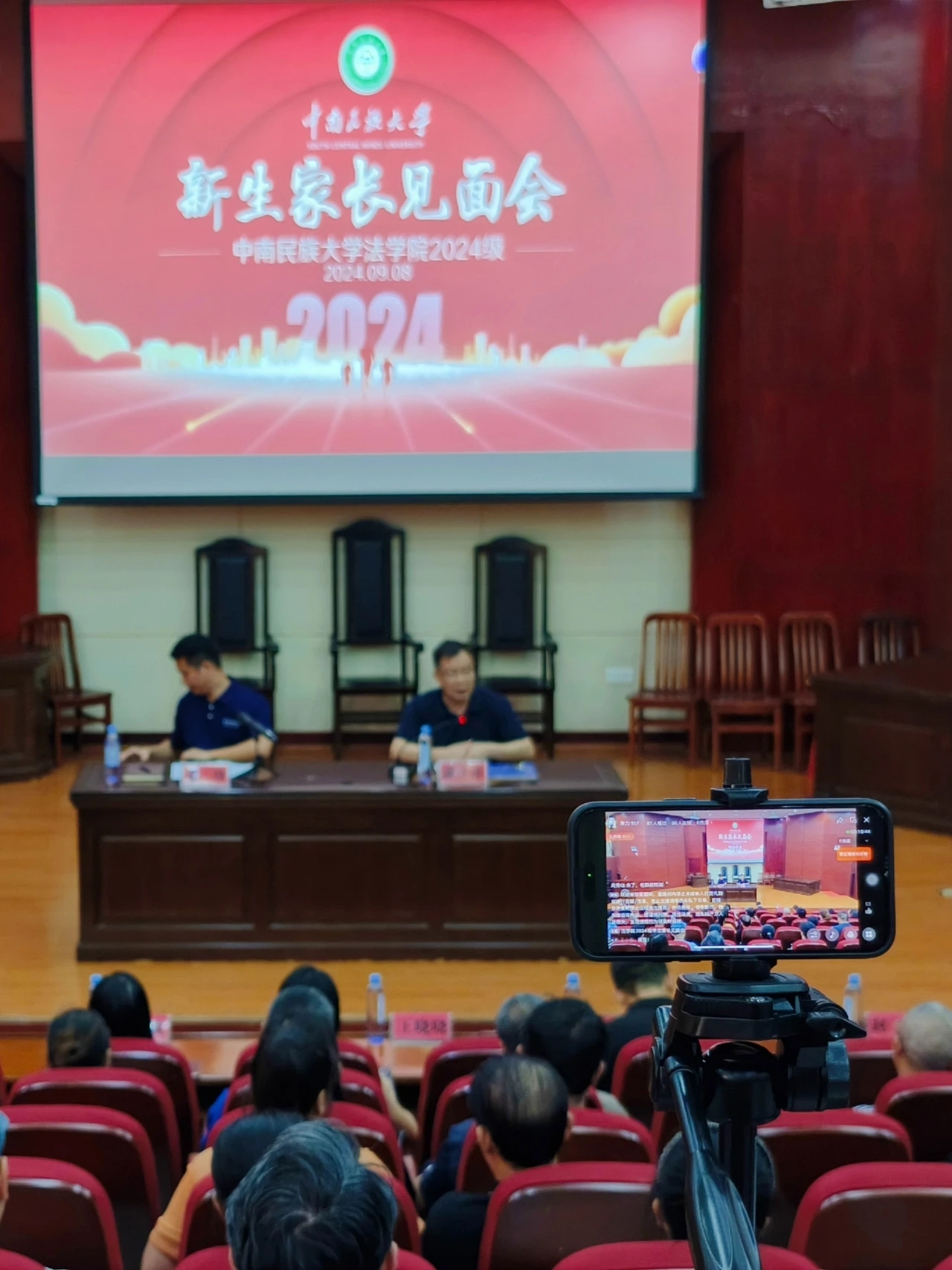 南湖之畔柳葉微拂,雙子塔東朝陽初升,法學院2024級新生們帶著無限的希冀開啟了人生新篇章。為了幫助新生更快適應大學生活,攜手家長共同營造良好的育才環境,9月8日,學院在模擬法庭召開以“家校聯合,同向發力”為主題的新生家長見面會。本次會議由黨委副書記、紀委書記姜珍主持,院長潘紅祥出席會議,2024級班導師、全體來校家長參會。