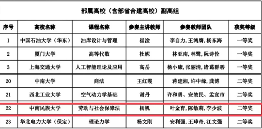 7月26-31日,由教育部高等教育司指導,中國高等教育學會主辦的第二屆全國高校教師教學創新大賽全國賽現場賽在西安交通大學成功舉辦。由我院楊帆、葉金育、陳敏麗和李少波組成的教師團隊經過校賽、省賽層層選拔,代表湖北省出征全國賽現場賽。經過激烈角逐,最終榮獲全國二等獎。