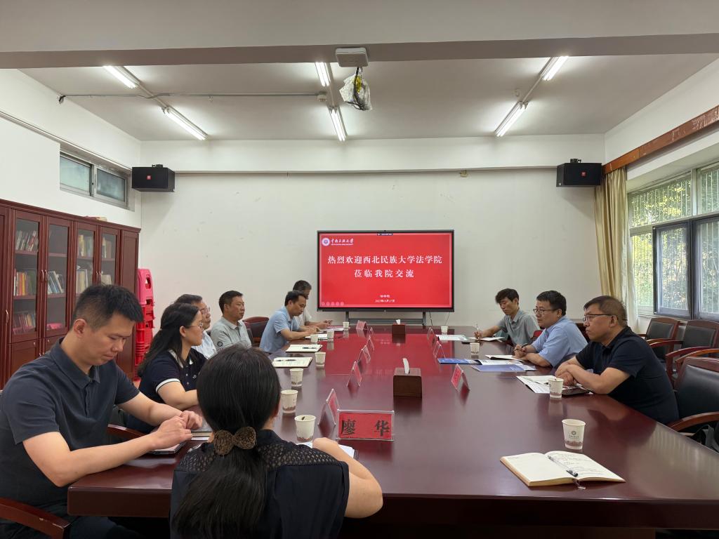 鄧行代表學(xué)院對(duì)王天雁一行的到訪表示熱烈歡迎。他表示,兩院作為兄弟院校,關(guān)系密切、淵源深厚,應(yīng)進(jìn)一步拓展交流領(lǐng)域、深化合作層次,共同致力于法律人才培養(yǎng)和民族地區(qū)法治建設(shè),為實(shí)現(xiàn)新時(shí)代依法治理民族事務(wù)高質(zhì)量發(fā)展貢獻(xiàn)力量。
