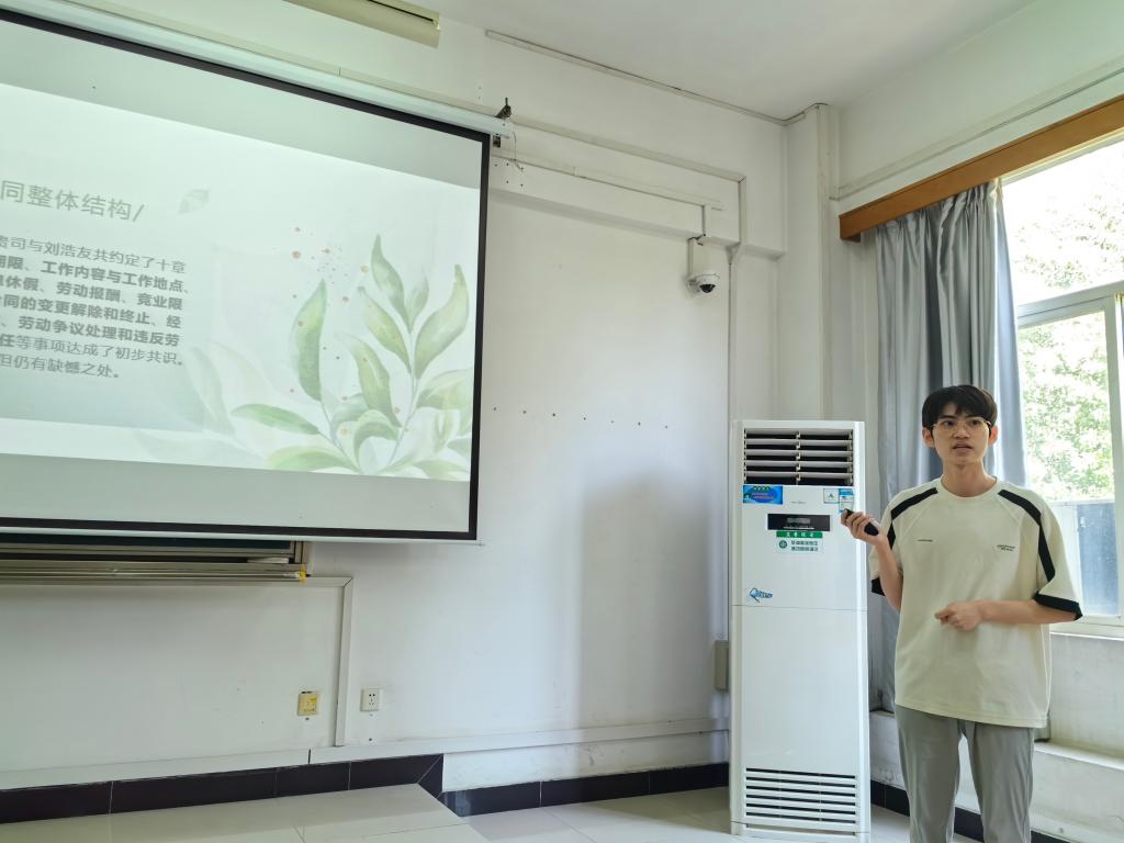 (同學代表就勞動合同審查發表自己的見解)