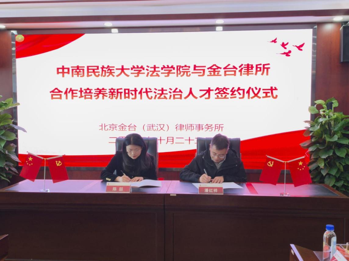 10月22日,學院院長潘紅祥、副院長廖華一行赴北京金臺(武漢)律師事務所,出席雙方人才培養與實習實踐合作基地簽約暨授牌儀式。