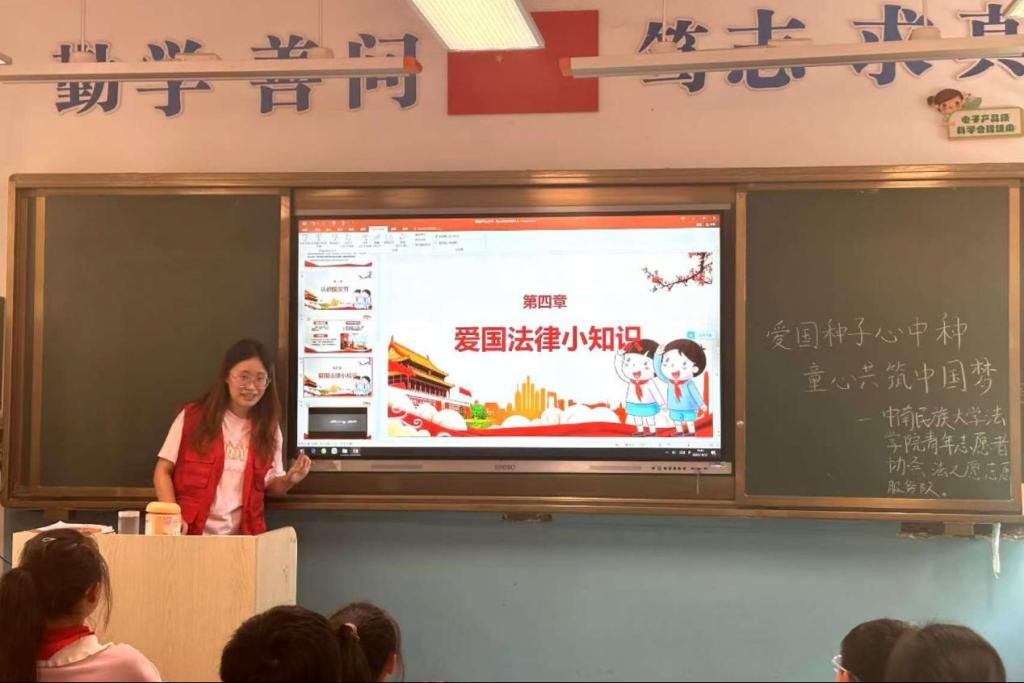 此時此刻,課堂變得十分安靜,同學們的表情也變得嚴肅了一些。小愿深知,這幾條法律知識已經深入同學們的內心。“愛國種子心中種,童心共筑中國夢。”這個主題也在此刻得到了升華。