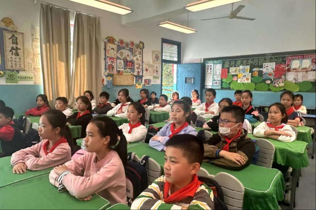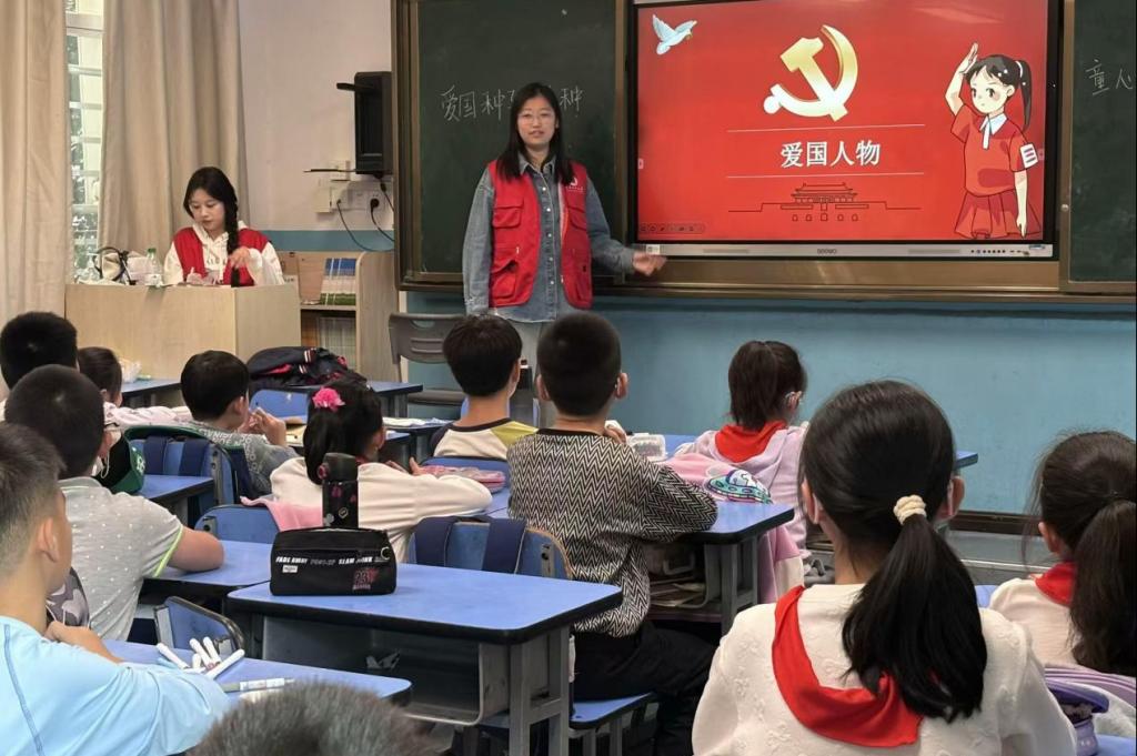 當然,小愿也為同學們介紹了一些愛國人物:雜交水稻之父袁隆平、肝膽外科之父吳孟超、兩彈元勛錢學森、優秀共產黨員張桂梅……在介紹的過程中,同學們全神貫注地將目光放在了小愿以及所展示的愛國人物身上,一雙雙童真的眼睛映射出的不僅僅是對知識的渴望,還有對愛國人物的敬畏。通過這些愛國故事,同學們的愛國熱情更加高漲。