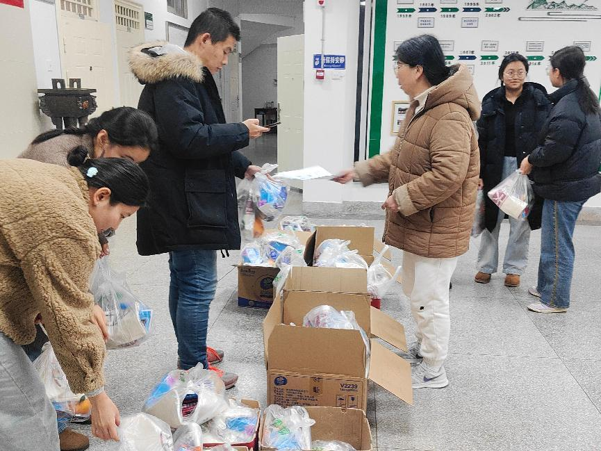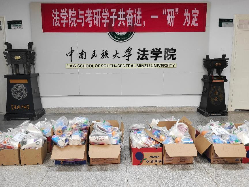 活動中,學(xué)子們收到了精心準(zhǔn)備的考研禮包,當(dāng)中不僅有紙巾、暖寶寶、帆布包等實(shí)用物品,還有具有美好寓意的“力”量滿滿——巧克力,好運(yùn)“旺旺”——旺仔牛奶,“橙”功上岸——橙子。老師們將大禮包送到考研學(xué)子手中,親切叮囑大家要注意調(diào)整心態(tài)、注重勞逸結(jié)合,以最好的狀態(tài)迎接考試。