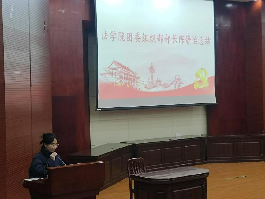 之后,團委組織部部長陳靜怡上臺發言。她首先對各位學員順利結業表示祝賀,并對幕后默默付出的各團建班主任和部門表示感謝。隨后對本期團校課程進行總結,同時也對大家發出新的號召,希望學員們能將團校學習中的收獲應用到今后的工作和學習當中,在結業后堅持學習團的理論知識,爭做更加優秀的團員青年和學生干部。