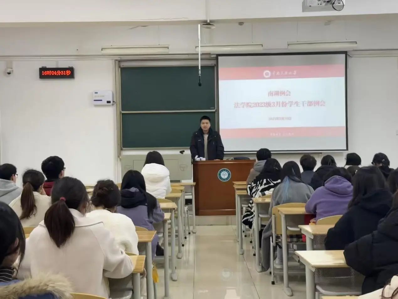 3月10日下午16:00,法學院2023級在15號教學樓110教室召開了本學期首次學生干部工作例會。會議由2023級輔導員陶恒老師主持,全體班委參加。