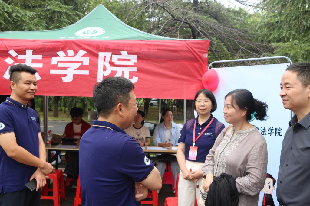 迎新現場,一份特別的感動悄然流淌。學院黨委書記鄧行、黨委副書記兼紀委書記姜珍與2025級輔導員張利菊早早地來到了迎新一線。他們細致地查看每一個環節的流程,關切地詢問迎新進展,反復叮囑大家一定要為同學們提供最周全的保障。他們與工作人員親切交流,向志愿者的辛勤付出表示感謝;更與遠道而來的新生和家長們促膝談心,分享大學生活的經驗,聆聽他們的想法與需求。從線上的第一聲問候,到線下的第一次并肩,我們力求將關懷落在每一個細微之處。開學第一步,愿你踏實而溫暖。法學院全體師生,正以最大的誠意,陪你穩穩走好大學生活的第一步。