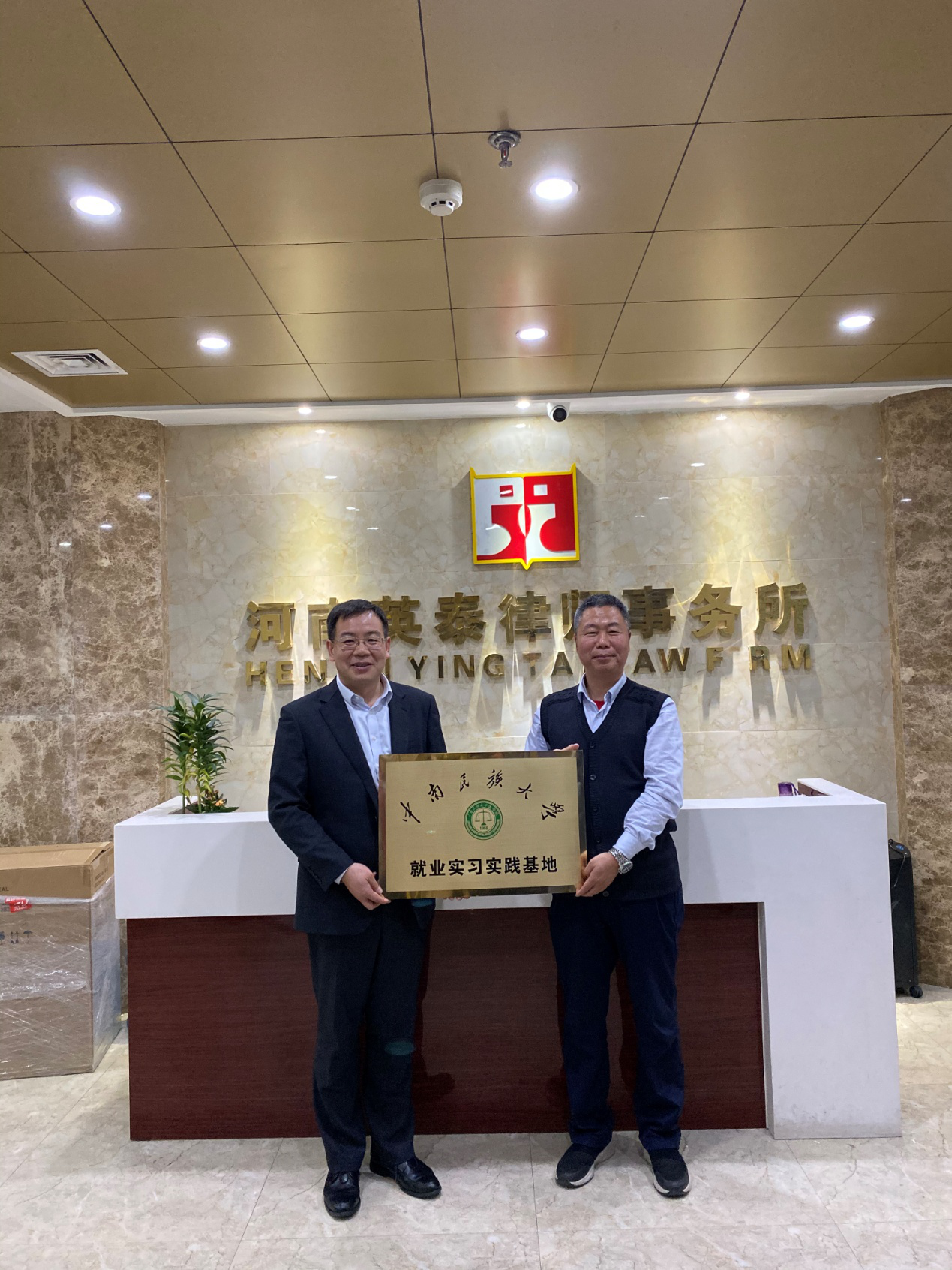 (潘紅祥院長一行走訪河南英泰律師事務所) 隨后,我院潘院長與英泰律所宋延偉主任簽訂了《中南民族大學·河南英泰律師事務所就業實習實踐基地建設協議》,并進行了接牌儀式。