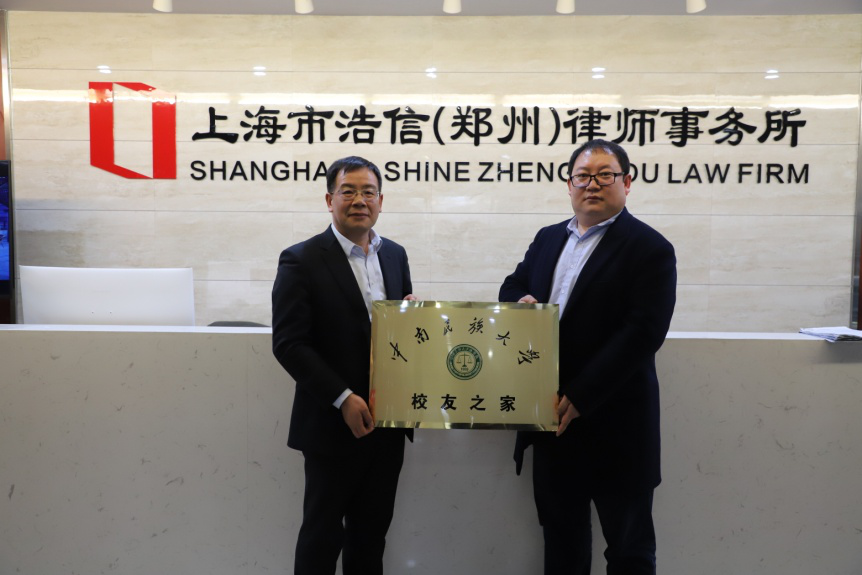 (湖北武珞律師事務所葉平主任發言) 隨后,潘紅祥院長代表中南大學法學院向上海市浩信(鄭州)律師事務所授予“校友之家”牌匾。
