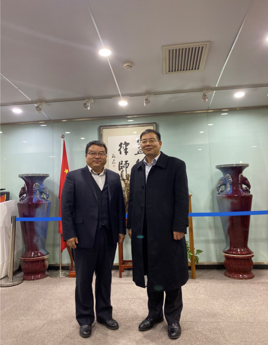 (河南益仟律師事務所劉懷成主任與我院潘紅祥院長進行交談)