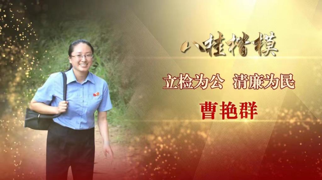 曹艷群來自資源縣梅溪鎮的一個小山村,2008年從我院本科畢業后,放棄了攻讀碩士研究生和在大城市發展的機會,回到了當時還是國家級貧困縣的資源縣,從該縣檢察院的書記員干起。在這里,她扎根基層檢察辦案一線13年,銳意進取、公正清廉,用年輕的生命書寫了對黨、對國家、對人民、對憲法法律的無限忠誠,曾榮立個人三等功3次、嘉獎4次。2021年12月15日,曹艷群同志因過度勞累突發心源性疾病,經搶救無效因公殉職,年僅36歲。被追授“全國崗位學雷鋒標兵”“全國模范檢察官”“自治區優秀共產黨員”“廣西三八紅旗手”“廣西青年五四獎章”“八桂楷模”等榮譽稱號。