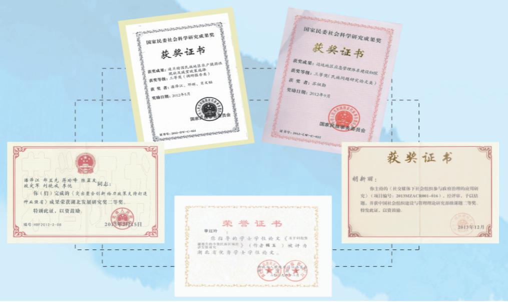 經(jīng)過多年的建設,中心形成了民族地區(qū)基層治理、民族地區(qū)鄉(xiāng)村振興、民族地區(qū)鄉(xiāng)村規(guī)劃與旅游發(fā)展等穩(wěn)定的研究方向,在科學研究、資政服務及人才培養(yǎng)方面取得了較好的成績:獲批國家及省部級項目20多項,獲得湖北省、國家民委等省部級以上科研獎勵及領導肯定性批示20次(項),完成民族地區(qū)“十四五規(guī)劃”、鄉(xiāng)村振興規(guī)劃及旅游規(guī)劃等30多項,培養(yǎng)碩博研究生21名。