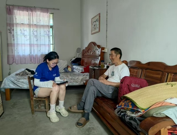 圖為CHARLS項目組實習的同學在居民家中調研訪談