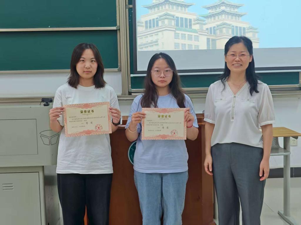 致辭結(jié)束后,黃瑞芹老師、張雄老師、程憲波老師分別給獲獎(jiǎng)的同學(xué)頒發(fā)獎(jiǎng)狀。