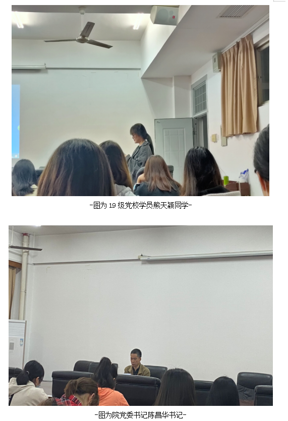 正值中國共產黨建黨一百周年之際,為了加強對入黨積極分子、發展對象和預備黨員的培訓工作,學習黨的百年歷史,中南民族大學公共管理學院于周二、周四兩天組織開展了本次黨校學員培訓會。院黨委書記陳昌華、本期黨校負責人雷盼、帶班黨員向加利共同學習參加了此次培訓會。