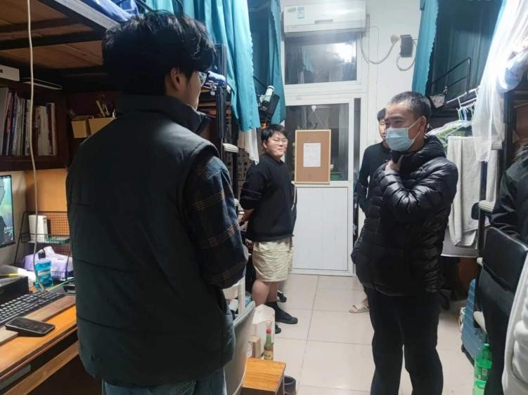 師老師在走訪中向同學們強調了寢室衛生及用電安全等相關要求,反復叮囑大家須嚴格遵守學校住宿規定,提高防電詐等安全防范意識。