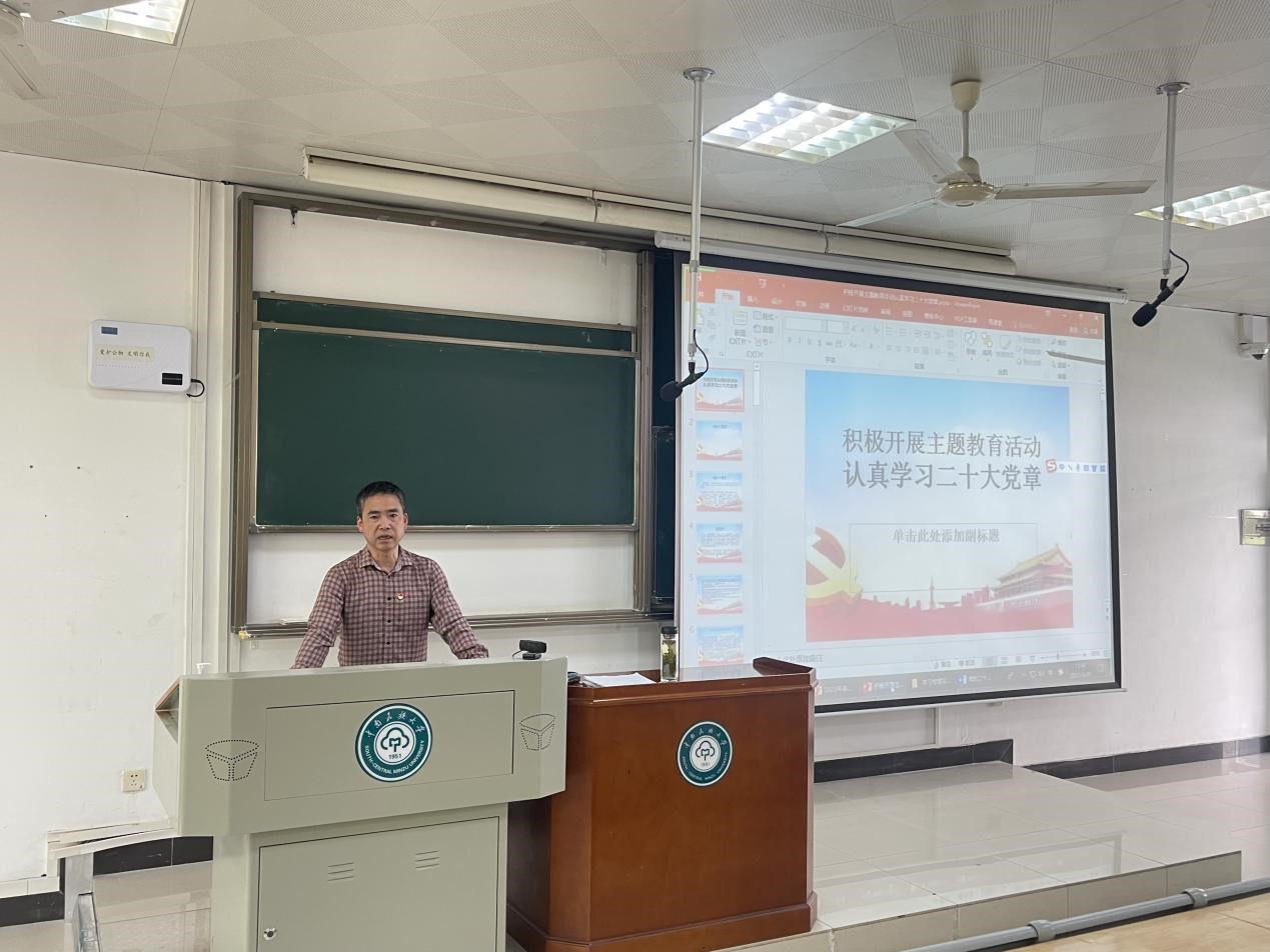 接著陳昌華書記為大家講授了題為《積極開展主題教育 認真學習二十大黨章》的黨課,陳書記先用“唱好一首歌”,帶領同學們領會了歌曲背后的意義。然后,陳書記帶領同學們“欣賞一首詩”,與同學們體會黨章這一《共產黨人的精神富礦》。接著,闡述了黨章的概念以及與黨內法規、國家法律的關系,最后,陳書記詳細介紹了黨的二十大通過的《中國共產黨章程(修正案)》的總綱以及部分章節。
