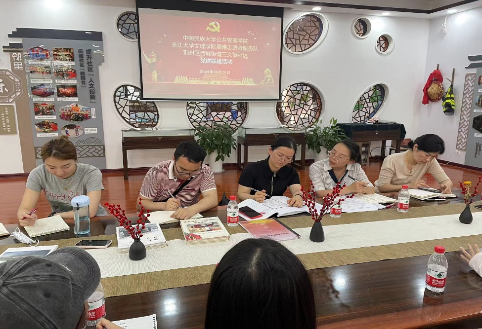 6月20日,中南民族大學(xué)行政管理系支部書(shū)記胡新麗與副書(shū)記方付建帶領(lǐng)行政管理專業(yè)學(xué)生到荊州市西城街道通會(huì)橋社區(qū)與三義街社區(qū)進(jìn)行黨建聯(lián)建和調(diào)研活動(dòng)。