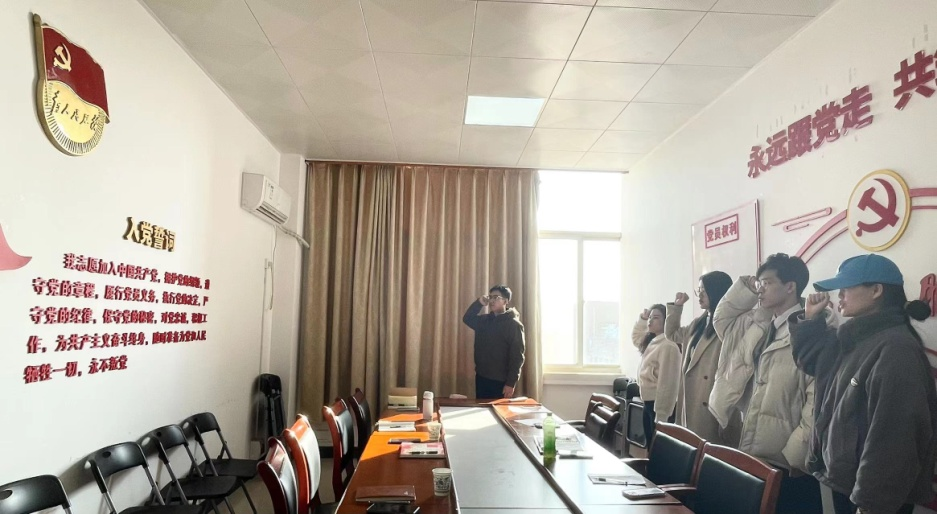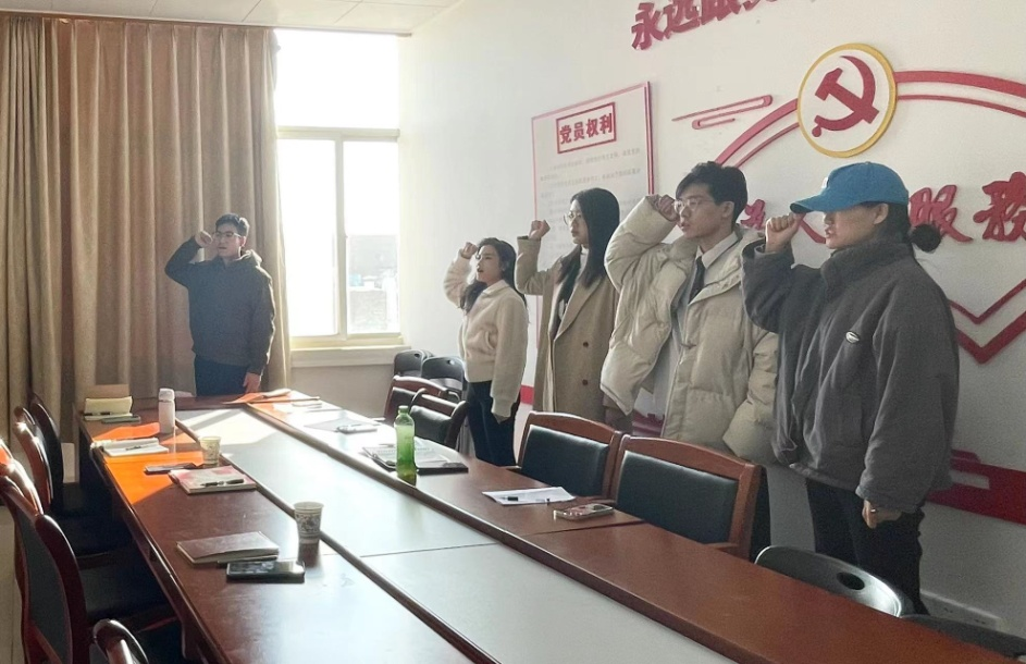 帶著楊燕老師的深切期望,同志們的目光聚焦到入黨誓詞墻上,宣誓儀式正式開始。由2023級研究生團支部書記、正式黨員代表牛佳偉領(lǐng)誓,研究生預備黨員曹旭杰、王妍妍、羅玉香、葉多面對黨旗,莊嚴宣誓。宣誓聲中,每一位預備黨員都表達了自己對黨的忠誠和對黨的事業(yè)的堅定承諾。
