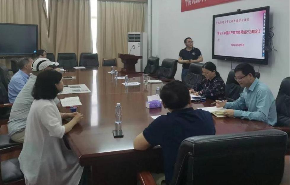 為把黨紀學習教育抓緊抓實引向深入,5月30日中午,公共管理學院行政管理系黨支部在15-818會議室召開主題黨日活動,組織全系黨員教師開展《中國共產(chǎn)黨黨員網(wǎng)絡(luò)行為規(guī)定》專題學習。