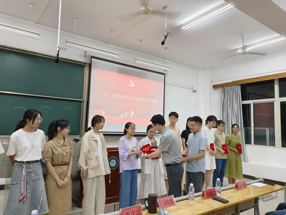 隨著本期黨課最后一講的結束,在莊嚴肅穆的中華人民共和國國歌中,黨校的結業儀式拉開帷幕。班主任李文志老師對本期黨校進行了總結,院黨委副書記丁海江老師宣讀了本期優秀學員的名單,王佳馨、王墉同學分別代表本科生、研究生優秀學員代表進行交流發言,分享自己的學習心得。最后,方德斌副校長為優秀學員頒獎并合影留念。