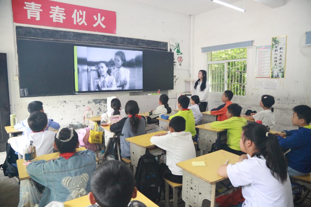 為了解大水學校課堂教學情況,開展課堂教學研討,我院MPA研究生黨員,武漢市光谷第二十五小學教師覃堃為四年級學生帶來了一堂“雞兔同籠”問題的示范課,覃堃充分結合了各種信息技術手段,以圖文并茂的方式講述了“雞兔同籠”問題的四種解法,課堂上師生互動頻繁,氣氛十分活躍。我院研究生黨員,曾赴貴州省印江縣羅場鄉羅場中(小)學支教一年的湯芳為五年級學生帶來了一堂生動的音樂課,師生一起同唱紅色歌曲。此外,我系入黨積極分子黃雅靜、程卓穎為幼兒園小朋友分發了帶來的文具、繪本、益智玩具等,并與小朋友們一起唱兒歌、做游戲。