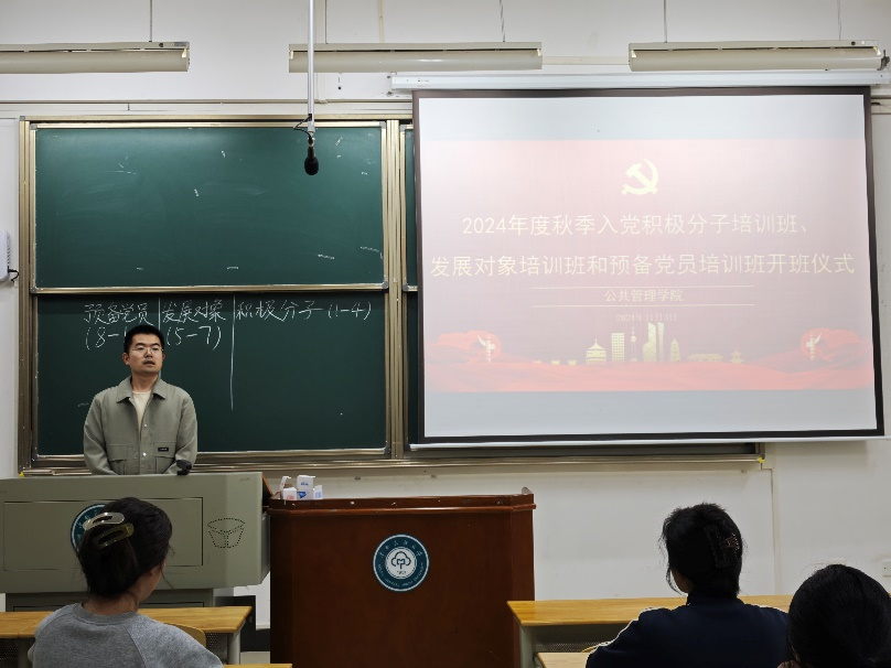 為深入學習貫徹習近平新時代中國特色社會主義思想,全面貫徹黨的二十大和二十屆二中、三中全會精神,進一步引導廣大學生堅定理想信念,加強黨性修養,傳承紅色基因,鑄牢中華民族共同體意識,樹立正確民族觀,2024年11月3日晚,公共管理學院2024年秋季黨校培訓班開班儀式暨黨課第一講在15棟312教室順利開展;此次培訓班的入黨積極分子、發展對象和預備黨員全部參加了開班儀式暨黨課第一講。本次開班儀式暨黨課第一講由班主任李文志老師主持,學院黨校校長、院黨委書記馬國杰主講。