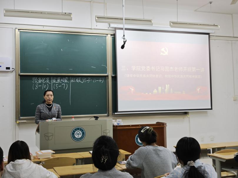 隨后,學院黨委書記馬國杰以《鑄牢中華民族共同體意識,構筑中華民族共有精神家園》為主題,為同學們帶來精彩的開班第一講。馬國杰書記巧妙運用明暗兩條線索,系統梳理了中華民族跨越數千年的輝煌歷史進程,以及在此過程中各民族之間的交往、交流、交融,指出中華民族共同體意識是中華民族綿延不衰、永續發展的力量源泉。此外,面對新時代中華民族共同體建設所面臨的國內與國際雙重挑戰,馬國杰書記著重強調了構筑中華民族共有精神家園的緊迫性和重要性。表明要從四個核心方面著手:一是堅定文化自信,弘揚中華優秀傳統文化;二是培育和踐行社會主義核心價值觀;三是深入學習并發揚偉大的建黨精神;四是不斷促進民族交往交流交融。通過這些舉措引領和推動中華民族共同體建設穩健前行,為中華民族偉大復興奠定堅實的精神基礎。